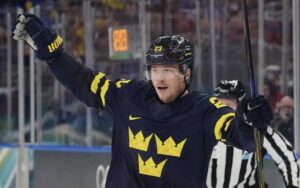 Lucas Raymond had three assists, while William Nylander, Mika Zibanejad, and Gabriel Landeskog each had a goal and an assist for the Swedes. Eduards Tralmaks replied for Latvia.